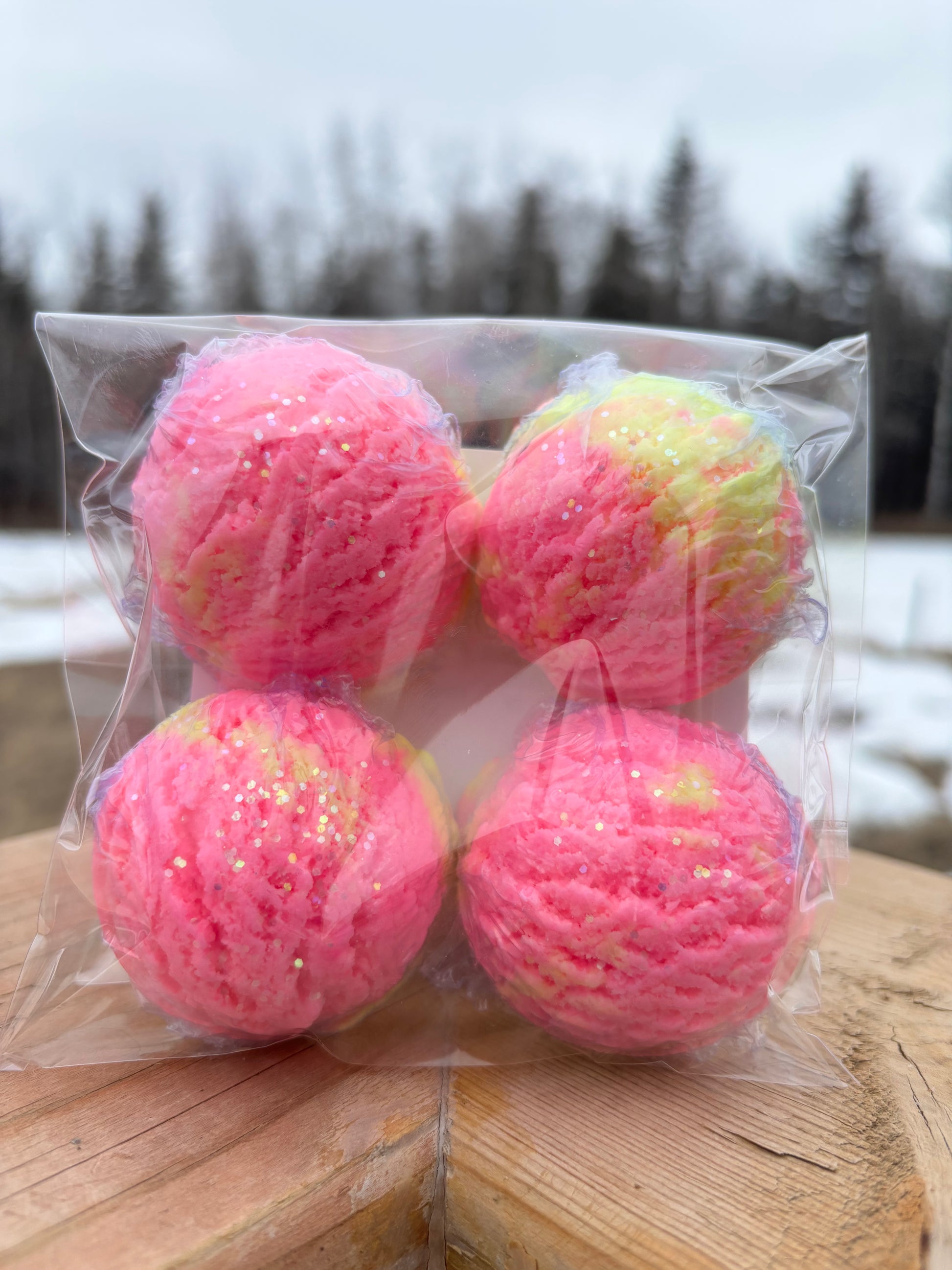 ingredients: Baking soda, SLSa, Cream of tartar, citric acid, polysorbate 80, glycerine, Shea butter, Cocoa butter, fragrance, Mica or Pigment (eco glitter).